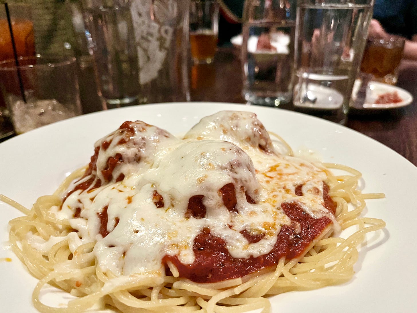 For entrees, we had a hot dago at the table, a lasagna, a chicken alfredo and then the pictured spaghetti that was my meal. I have to get the classics when I’m here because they’re just that good. The red sauce is delicious and has just a little bit of a kick so it’s not too sweet. It’s definitely recommended to add baked mozzarella as well. How can you not?