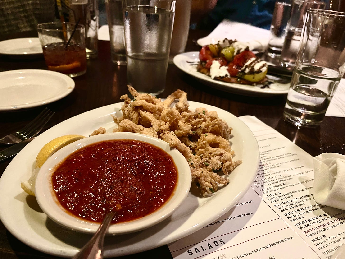 The appetizers are always delicious and the perfect size to share, and don’t forget about the bread that comes to the table with an amazing seasoned butter. The calamari comes with their red sauce (more to come on that) and the tomatoes that come with the bruschetta were some of the best I’ve had.